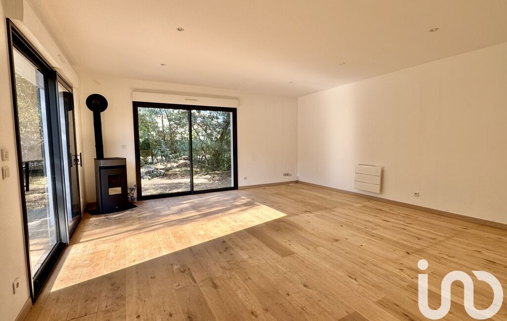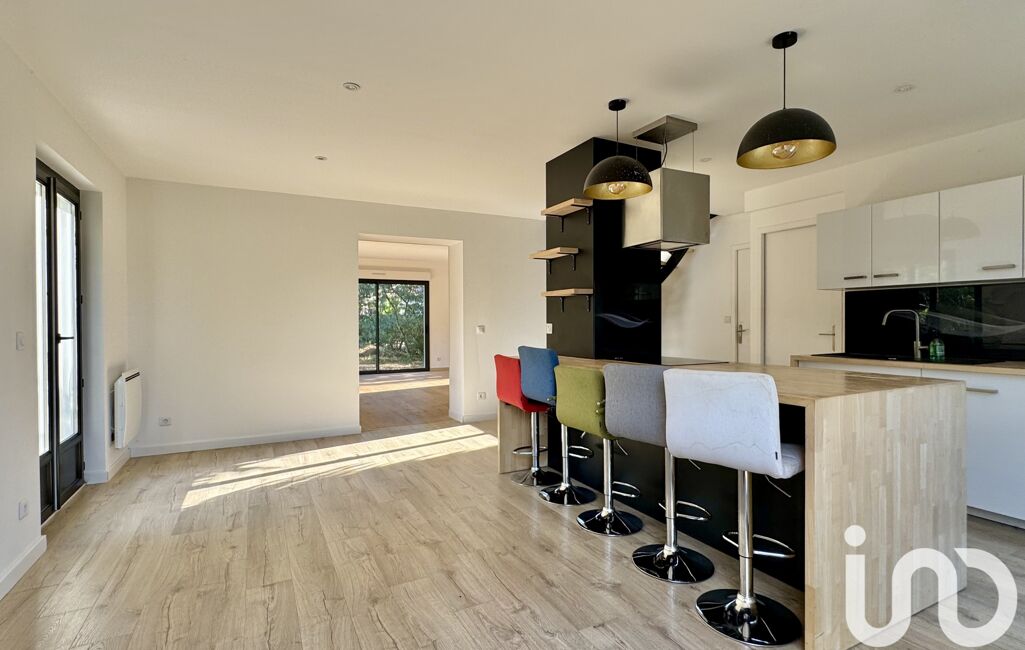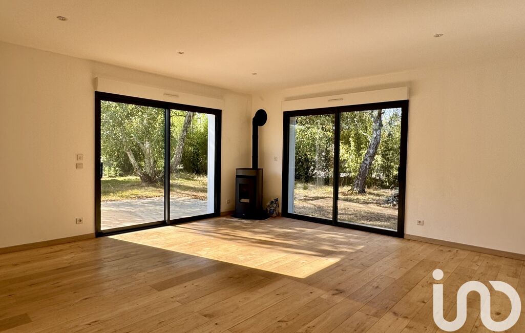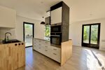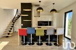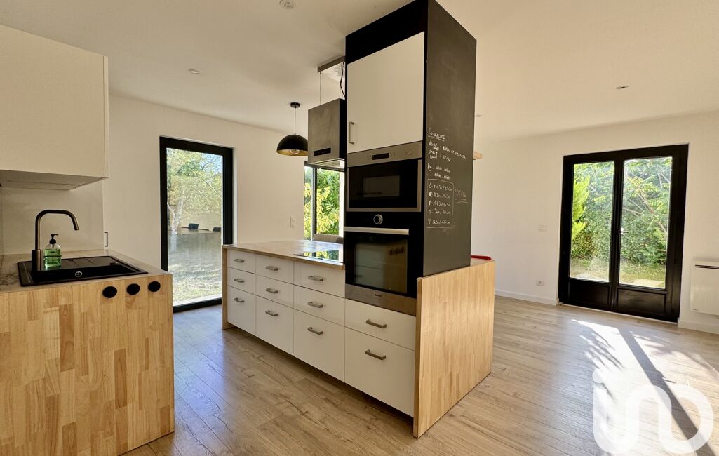 La partie jour, d’environ 60 m², offre une cuisine dinatoire moderne, aménagée et équipée, ainsi qu’un séjour lumineux grâce à ses grandes ouvertures sur l’extérieur, agrémenté d’un poêle à granulés pour plus de confort.