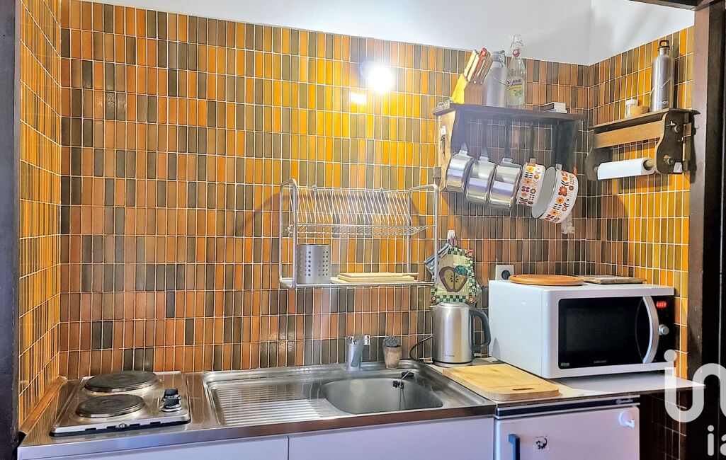 Le studio de 35 m² se compose d'une belle pièce à vivre de 20 m², d'un coin cuisine avec espace repas de 5 m², d'une entrée-cabine de 5 m², d'une salle d'eau et de WC séparés (tous deux rénovés), ainsi que d'une belle terrasse couverte de 6 m².