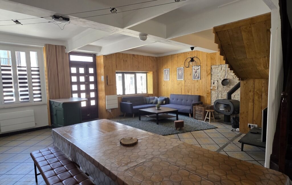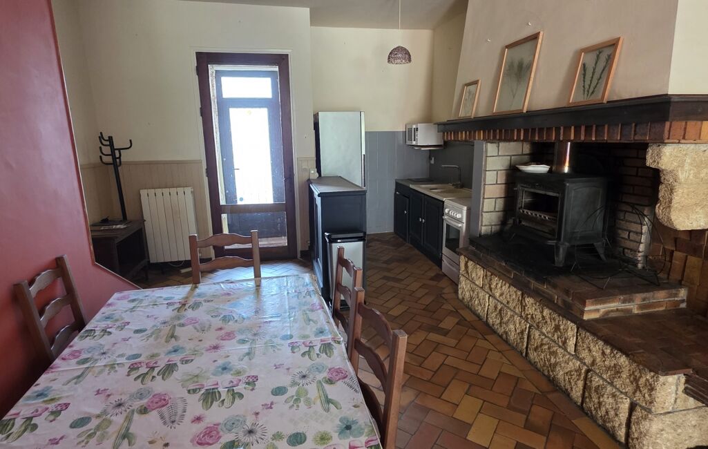 Elle dispose d’une pièce de vie chaleureuse de 42 m² avec cuisine ouverte, salon/salle à manger, et une cheminée apportant authenticité et confort.