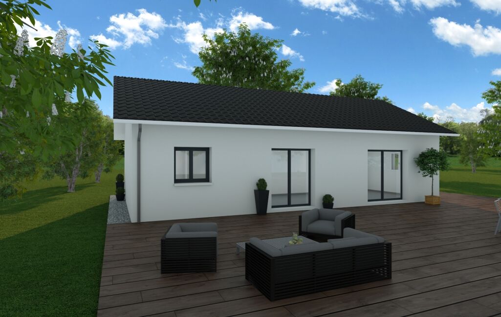 Une maison de 90m2 comprenant 3 chambres spacieuses, un espace de vie lumineux et fonctionnel, Wc séparés, salle de bain moderne et personnalisable, et avec 15m2 de garage (en option).