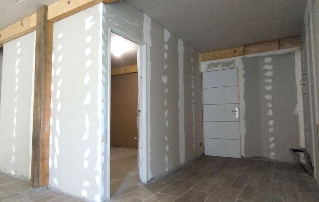 Une partie de 94 m² située en rez-de-chaussée est déjà isolée et plaquée.