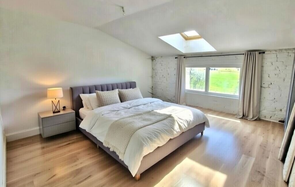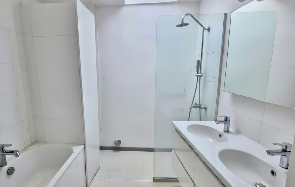 Au 1er étage : 2 chambres avec hauteur sous plafond standard et 1 salle de bain.