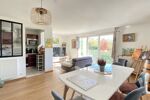 Comprenant au premier niveau un séjour Lumineux donnant sur un BALCON orienté Sud-Ouest avec très belle vue sur le parc de la résidence, une cuisine semi ouverte, aménagée et équipée, un WC séparé.