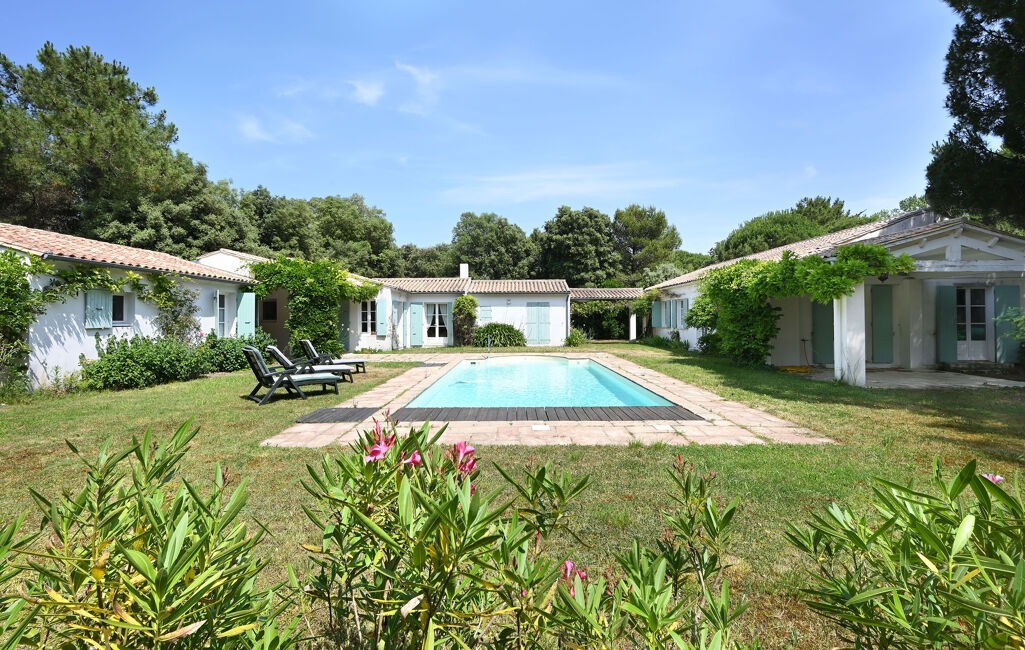 Située dans un environnement privilégié proche de la plage et sur une parcelle de plus de 2500 m², cette propriété se compose de deux maisons offrant chacune une pièce de vie, cuisine. Au total 7 chambres, 5 salles d'eau, 2 salles de bains. Une 8éme chambre indépendante avec sa salle d'eau. Exposée à l’Ouest, la propriété bénéficie d’un superbe jardin paysager, d’une piscine chauffée et d’un garage. Un lieu idéal pour profiter en famille du charme et du calme de l’île de Ré.