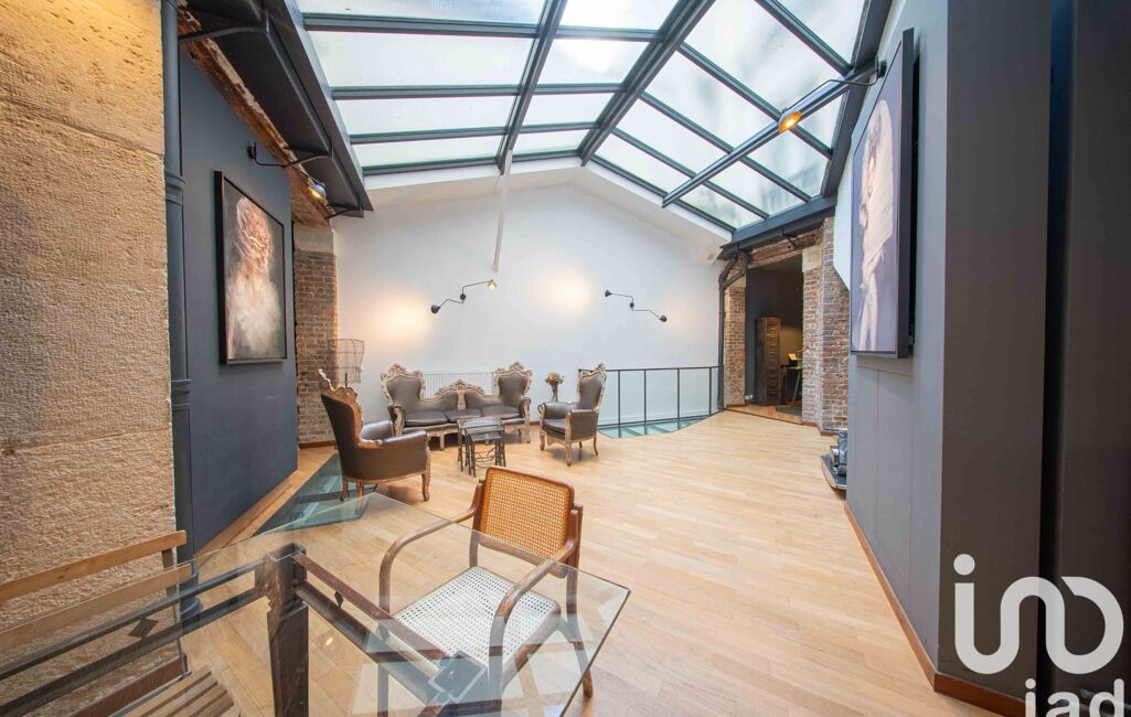 Au RDC vous trouverez une pièce de réception bénéficiant d'une lumière zénithale grâce à sa verrière, de beaux volumes (3,30 HSP), un espace cuisine/bar, un salon, une salle à manger et deux espaces bureaux.