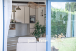 À ce propos, le bassin, chauffé et équipé d’une contre-nage et de jets de massage, jouit d’une remarquable intégration à la terrasse finie de bois et de pierre. Celle-ci sépare la maison d’un agréable et vaste jardin en demi-niveaux là-encore, et peu sujet au vis-à-vis.