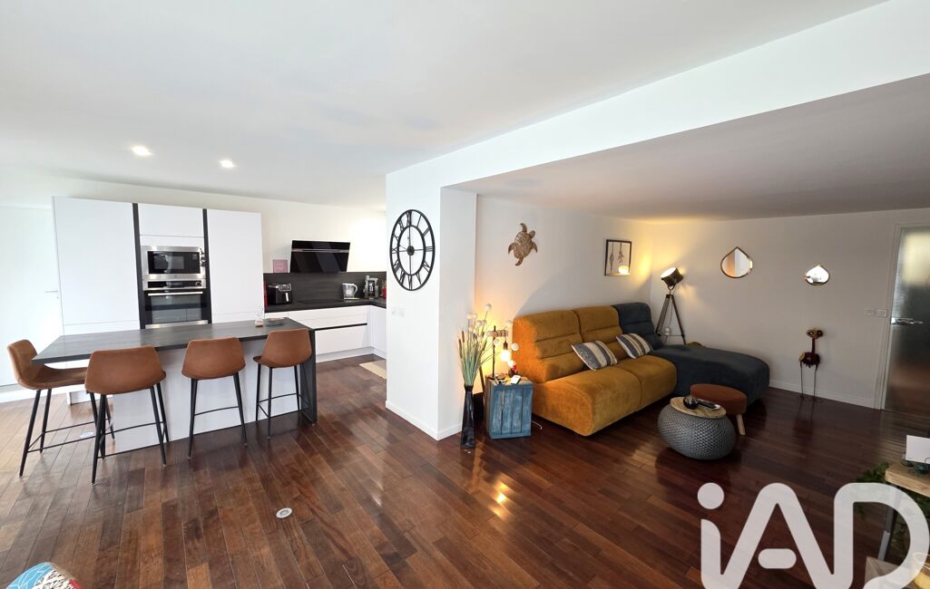 La pièce à vivre de 45m² se compose d' une superbe cuisine ouverte aménagée et entièrement équipée avec ilot central, un espace salle à manger ainsi qu' un coin salon.