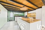 Dès l’entrée, séparée par une élégante verrière coulissante, on accède à une pièce de vie de près de 70 m², lumineuse et impressionnante avec plus de 3,80 m de hauteur sous plafond. La cuisine Schmidt, conçue sur mesure et parfaitement équipée, s’intègre harmonieusement dans cet espace convivial ouvert sur le jardin.