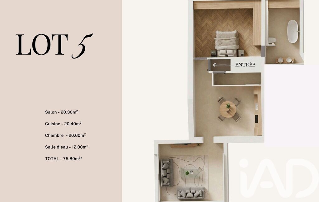 - Surface habitable : 57 m²