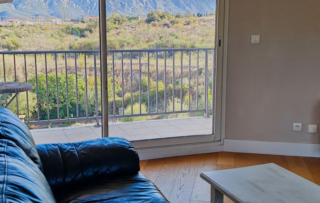 L’intérieur se compose d’un double séjour lumineux de 29 m², facilement aménageable en troisième chambre, de deux chambres spacieuses, d’une cuisine séparée équipée de 10 m² et d’une salle de bains, ainsi que d’un grand placard dans le couloir menant au coin nuit. Climatisé et bien entretenu, ce logement bénéficie du calme d’une petite copropriété sans nuisances sonores, idéale hors saison.