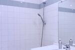 Salle de bain avec baignoire, sèche serviettes VMC, WC séparé.