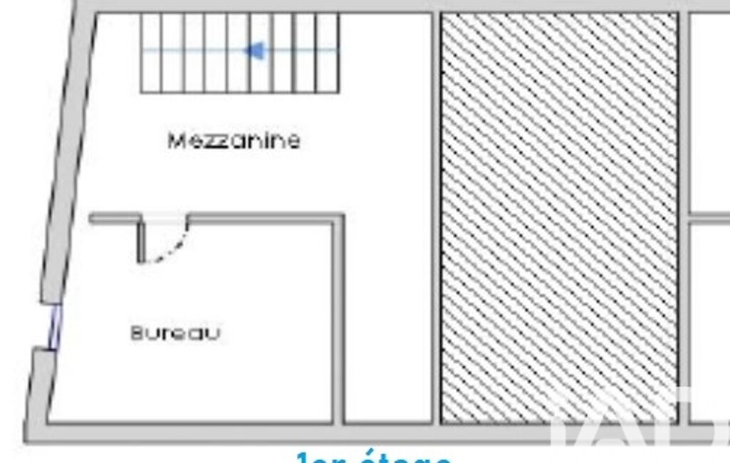 Une mezzanine avec bureau surplombe la pièce. Celui-ci peut également servir de chambre d’appoint.