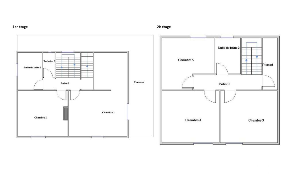- 2è étage : 3 chambres et une salle de bain + dressing
