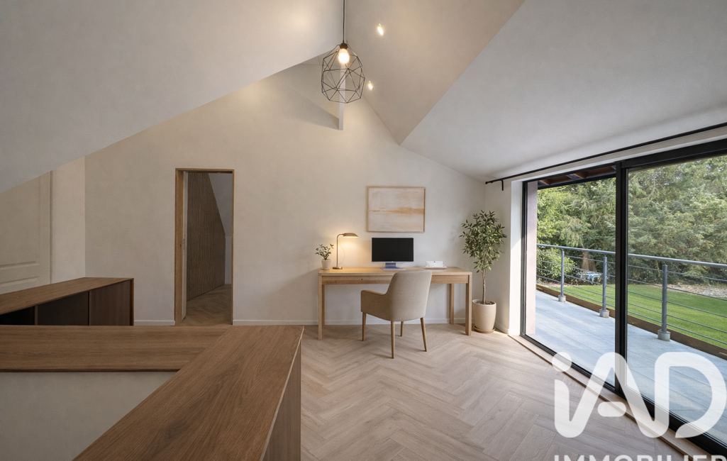 À l’étage, la maison dispose de trois chambres ainsi qu’un bureau, parfait pour le télétravail. L’agencement fluide et harmonieux répond parfaitement aux attentes d’une grande famille.