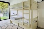 Deux chambres et une salle de bain complètent le rez-de-chaussée. À l’étage, un espace bureau modulable précède deux suites parentales avec salle de bain et WC. Jardin paysagé, piscine chauffée, prestations d’exception : un bien rare alliant confort, élégance et douceur de vivre.
