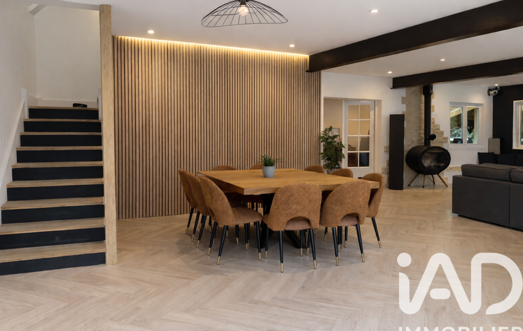 À l’étage, la maison dispose de trois chambres ainsi qu’un bureau, parfait pour le télétravail. L’agencement fluide et harmonieux répond parfaitement aux attentes d’une grande famille.