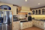 •Cuisine d’été intérieure avec WC séparé et accès direct à la terrasse par une grande baie vitrée doublée d'iroko conduisant à la piscine.