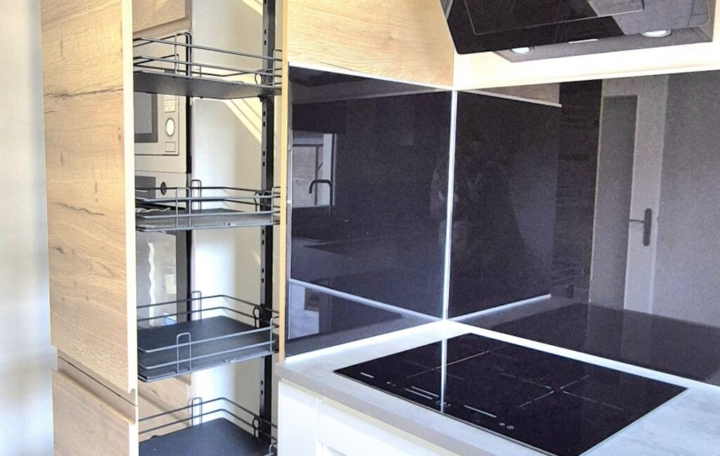 - Une cuisine séparée, très claire de 9 m2, refaite à neuf, aménagée et équipée d’électroménager également neufs, sous garantie (hotte, lave vaisselle, plaque induction, four, micro-ondes)