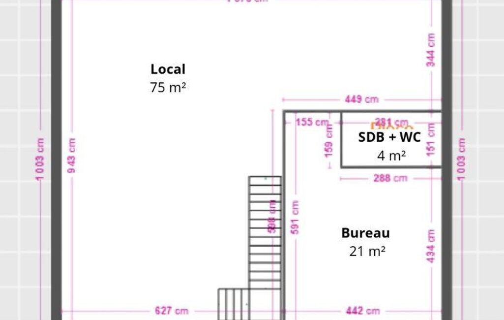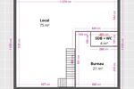 Ce local d’activité développe une surface totale d’environ 150 m² environ. Le rez-de-chaussée comprend 75 m² environ d’espace principal, complétés par un bureau de 21 m² environ ainsi qu’une salle d’eau avec WC de 4 m² environ.
