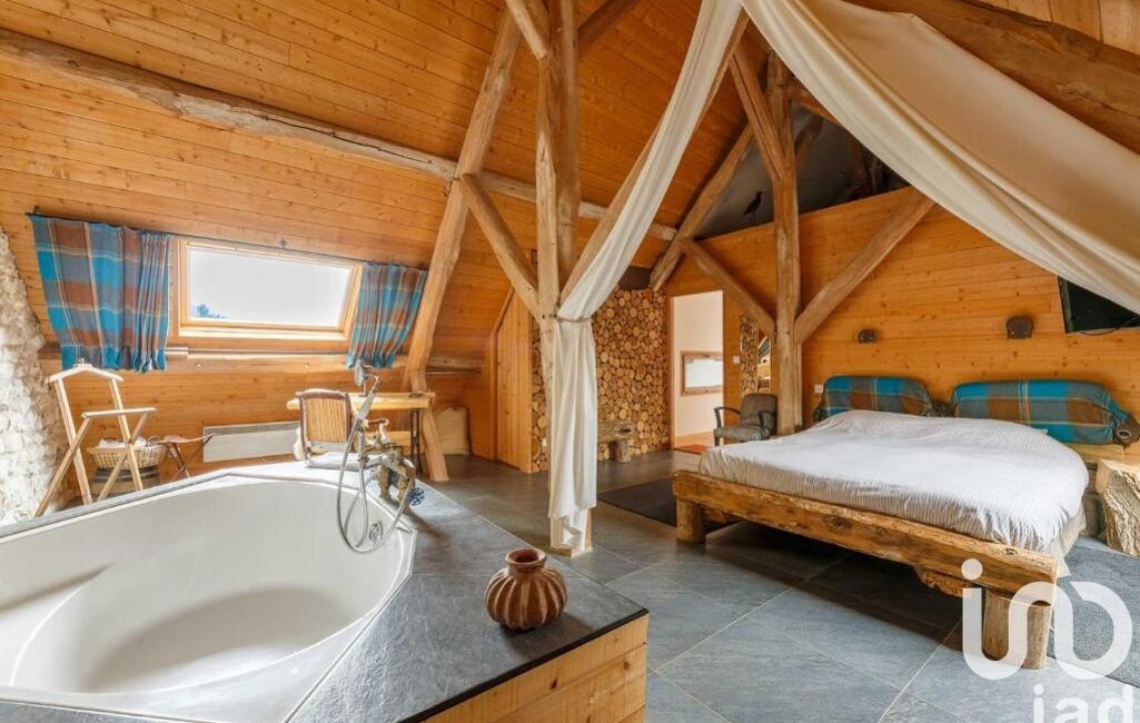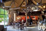La grange déploie 427m² avec volumes spectaculaires : séjour cathédrale traversant de 144m² (8,5m de hauteur) avec ses terrasses vue parc et prairie, mezzanine de 32m², 2 suites parentales, 2 dortoirs (pour 6), cuisine professionnelle pour organiser vos réceptions, atelier, toilettes invités.