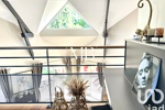 Un demi palier mène à un premier espace chambre avec bureau spacieux et salle d'eau.