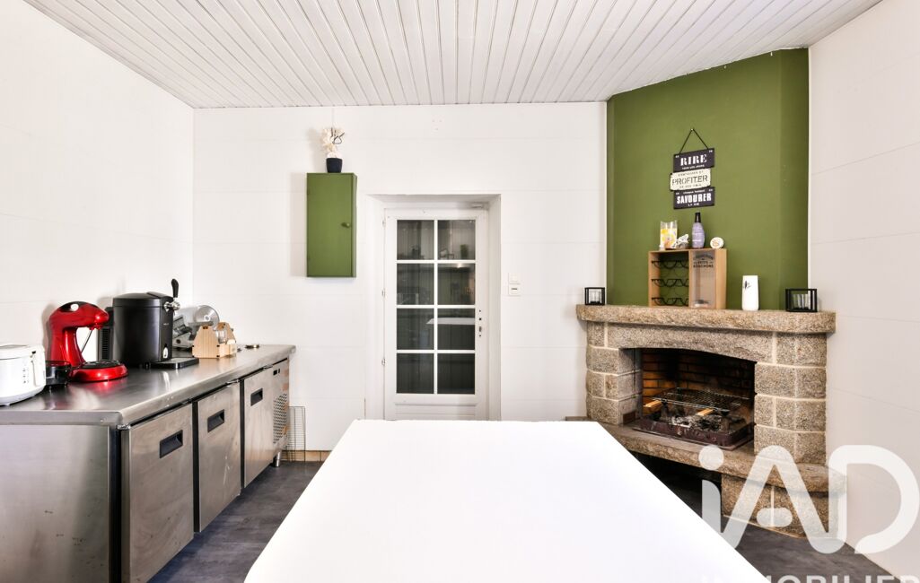 De l'autre, on découvre la cuisine aménagée et équipée, avec sa cheminée ancienne, véritable lieu de convivialité pour préparer de délicieux repas en famille ou entre amis.