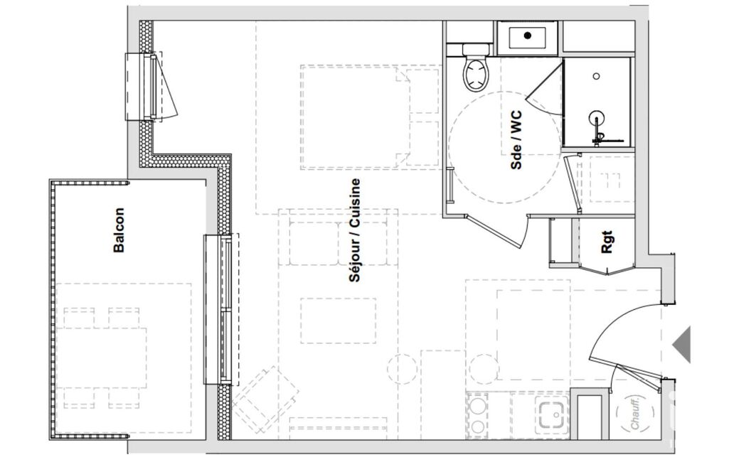 Situé au 2 ème étage, cet appartement T1 de 31 m² environ habitables se prolonge par un balcon de 7 m² environ.