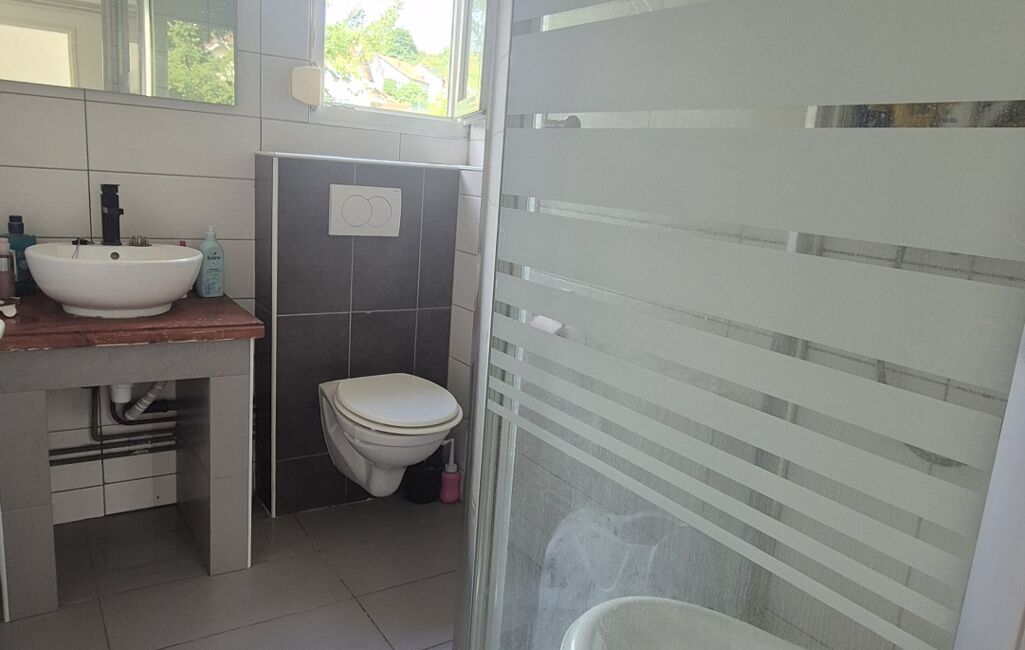 Il se compose d'une entrée ,une cuisine séparée ,un salon /séjour ,trois chambres ,une salle d'eau (douche, meuble vasque ,WC), un placard