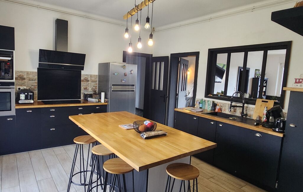 Une maison de caractère d'une superficie de 270 m² rénovée avec goût composée d'une entrée, d'une pièce de vie de plus de 35 m² semi ouverte sur la cuisine entièrement meublée et son cellier.