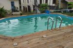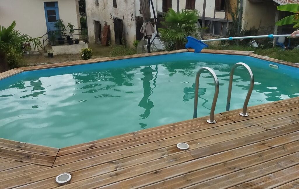 Bien entendu qui dit 'affaires de piscine', dit PISCINE ! Elle est la avec sa terrasse en bois.