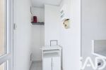 L'espace de vie se compose d'un séjour spacieux, d'une cuisine équipée séparée, d'une salle d'eau avec WC et d'un coin dressing, un grand placard d' entrée avec miroirs offrant un agencement pratique et fonctionnel. Les grandes baies vitrées laissent entrer la lumière naturelle, créant une atmosphère chaleureuse et accueillante.