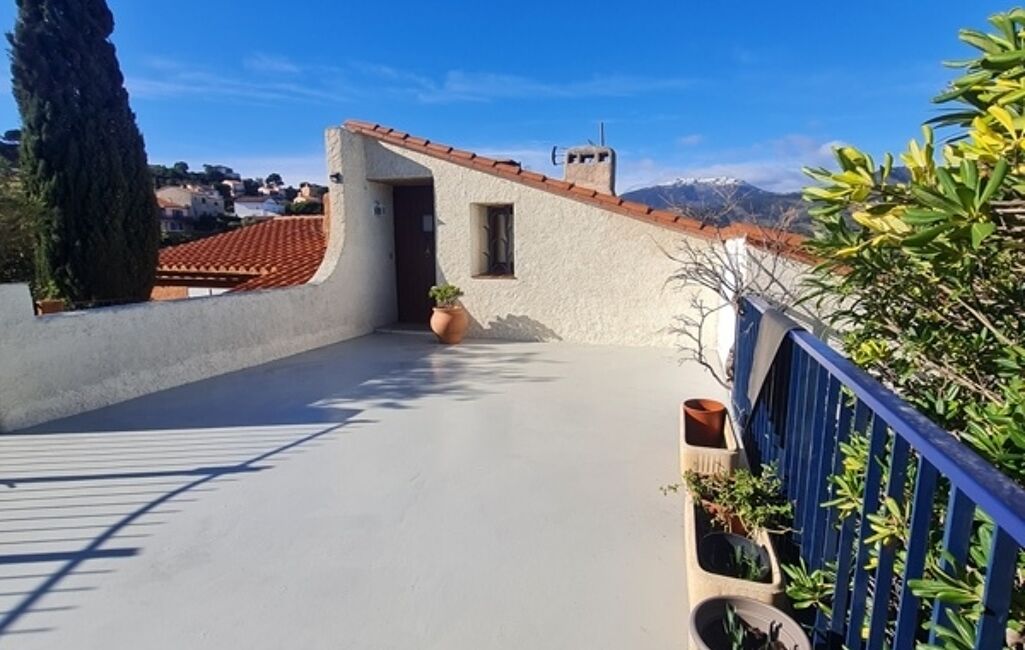 iad France - Suzanne O'reilly vous propose: Située au bout d’une impasse calme, proche du centre-ville de Banyuls-sur-Mer et à seulement 5 minutes à pied de la plage, cette maison construite en 1981 bénéficie d’un emplacement privilégié et d’une vue exceptionnelle sur la mer, les montagnes et la baie de Banyuls.