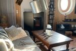 A l’intérieur de cette habitation découvrez le coin salon agrémenté d'un poêle à pellets qui offre une atmosphère douillette pour des moments de détente ainsi que le coin repas adjacent offrant un très bel espace convivial pour partager des repas avec vos proches et amis.
