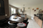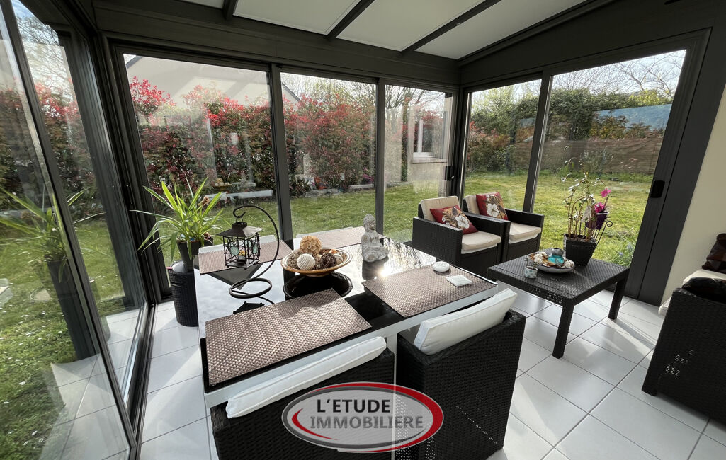 Elle vous offre au rez-de-chaussée une entrée avec placard, un salon-séjour exposé Sud-Ouest avec poêle à bois ouvert sur une véranda lumineuse donnant sur le jardin, une cuisine ouverte aménagée et équipée avec arrière-cuisine, ainsi que d'un WC indépendant et d'un garage attenant.