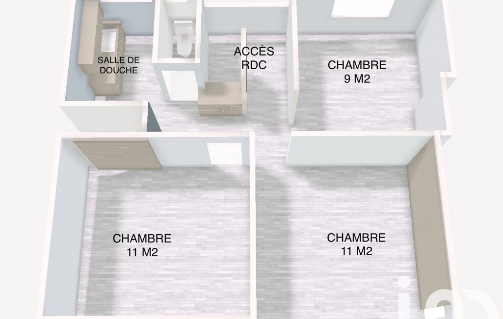 Un palier dessert trois chambres (de 9 à 11 m²), une salle de douche et des WC séparés.