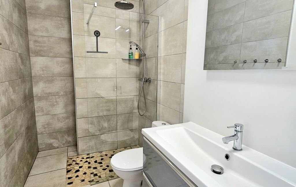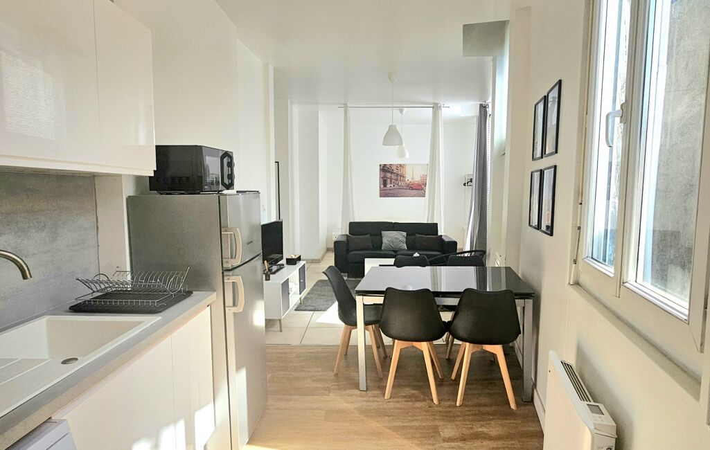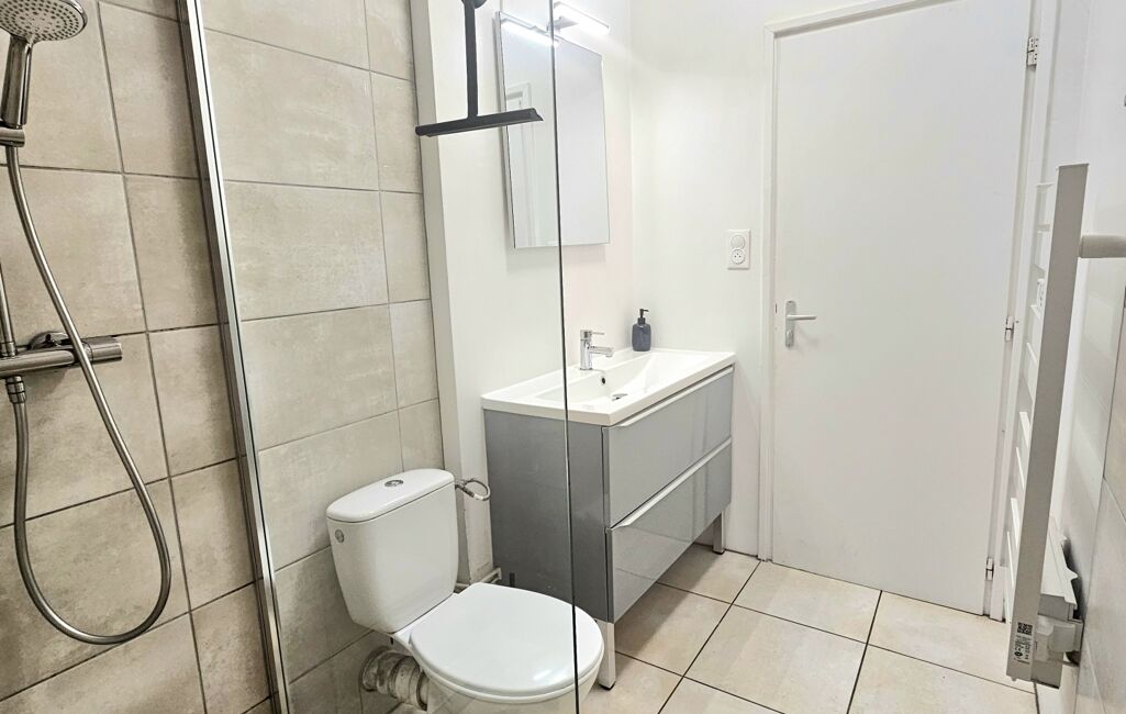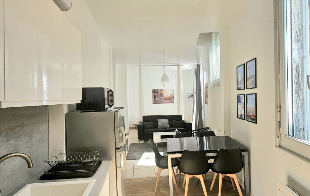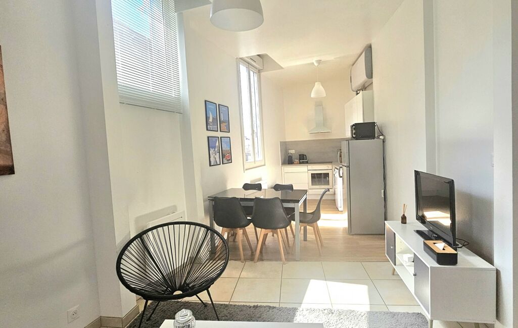 L'appartement se compose d'une chambre lumineuse avec placard, d'une salle d'eau moderne avec douche italienne, et d'un espace de vie ouvert comprenant un séjour, une cuisine équipée neuve, et un coin nuit . La configuration en 'open space' crée une atmosphère conviviale et accueillante, parfaite pour se détendre après une journée bien remplie.