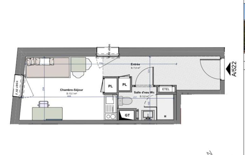 •Pièce principale de 13,1 m² environ