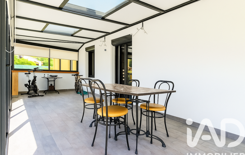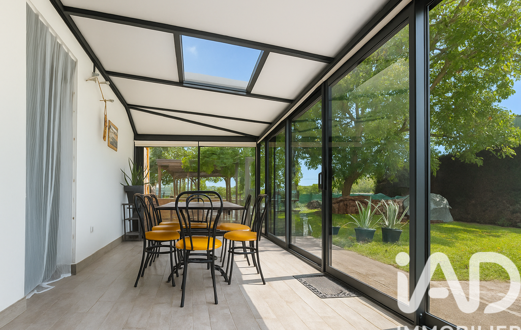 Une véranda de 23 m² prolonge naturellement la pièce de vie, idéale pour les repas en toute saison ou les moments de détente en famille.