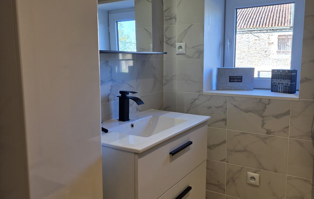 Cette maison offre une rénovation intérieure totale, est équipée d'un poêle à granulé et de volets roulants électriques.