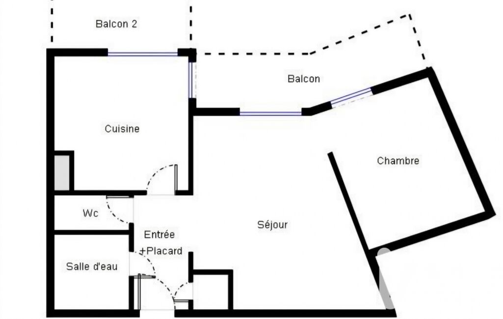 La cuisine séparée, équipée, permet de structurer les espaces et de faciliter le quotidien. Elle bénéficie également d’un accès à un second balcon, un atout rare sur ce type de surface.