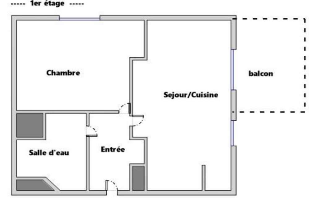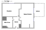 Il est composé d'une entrée avec rangements desservant le séjour / cuisine ouverte avec son accès à son balcon, une chambre et une salle d'eau avec WC.