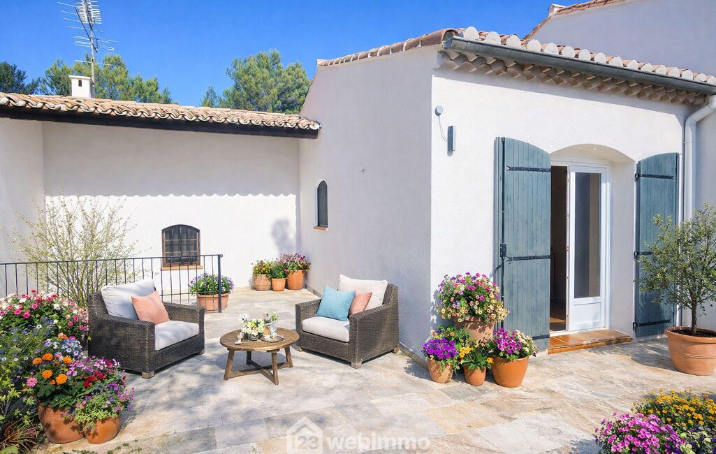 Votre agence 123webimmo vous présente : Nichée sur les hauteurs de Cazan, ce joli hameau à 5mn du centre-ville de Lambesc, cette villa de plain-pied allie avec harmonie le calme de la campagne et la proximité de la ville.