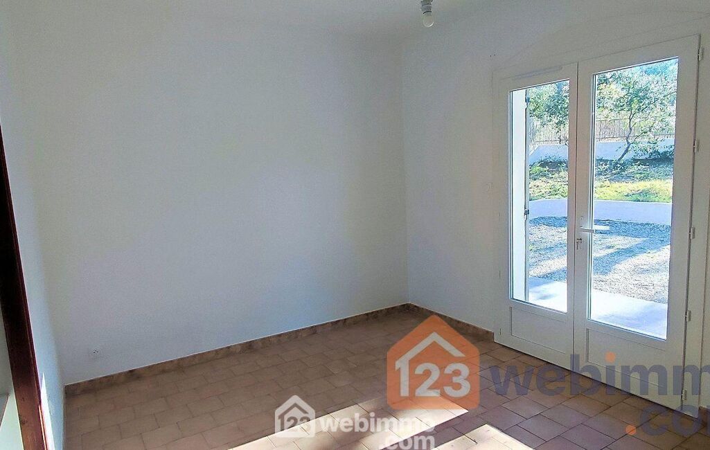 Une belle terrasse plein SUD prolonge les pieces de vie et dessert la chambre principale équipée d'une porte fenêtre.