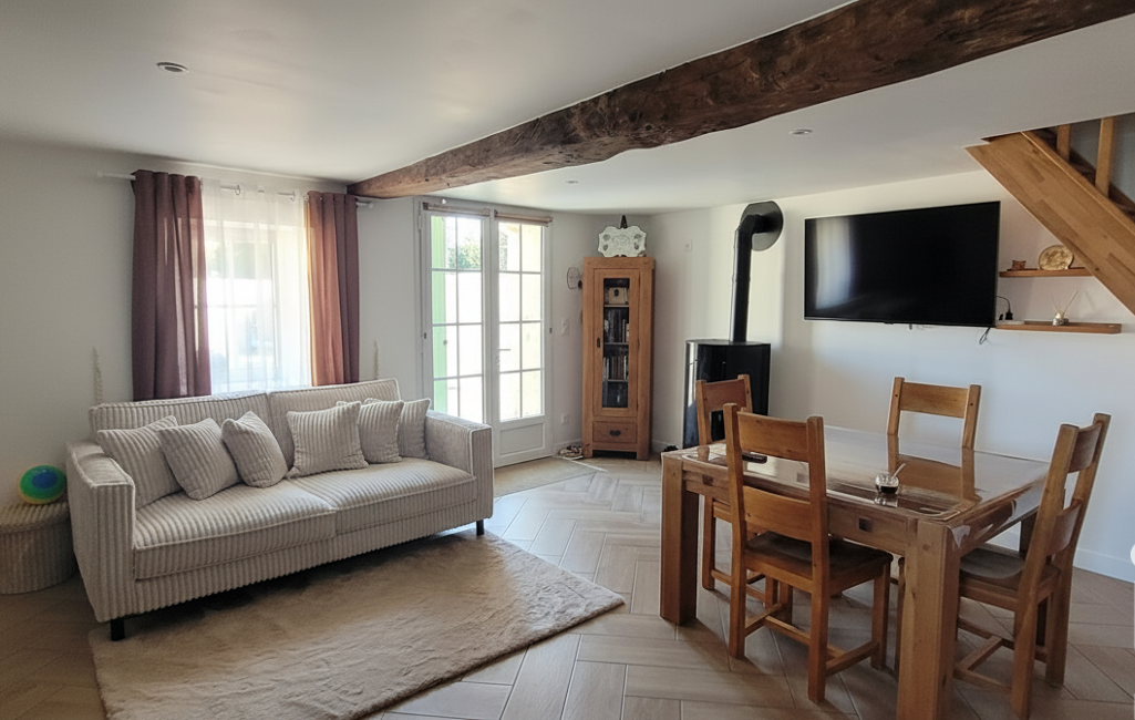 iad France - Philippe Neveu vous propose: Maison rénovée alliant modernité et charme de l'ancien, offrant quatre chambres et un séjour ouvrant sur une agréable terrasse, idéale pour profiter des journées ensoleillées.