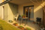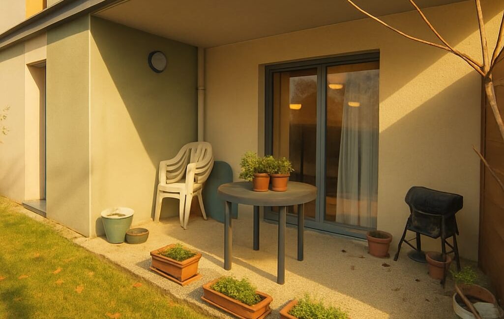 L’appartement se compose d’une entrée avec placard, d’une cuisine équipée ouverte sur un séjour lumineux, prolongé par une agréable terrasse et un jardinet privatif — un véritable atout très apprécié des résidents.
