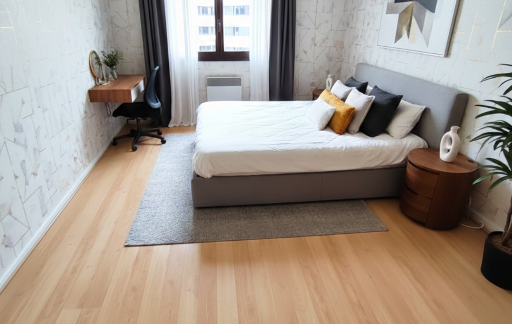 L’espace nuit comprend deux grandes chambres d’environ 15 m² chacune ainsi qu’une salle de bains et un WC indépendant.