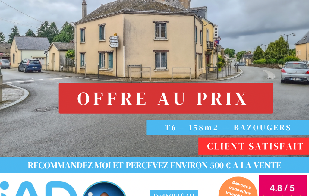 La présente annonce immobilière a été rédigée sous la responsabilité éditoriale de M Faël Soulé Ali mandataire indépendant en immobilier (sans détention de fonds), agent commercial de la SAS I@D France immatriculé au RSAC de LAVAL sous le numéro 841763816, titulaire de la carte de démarchage immobilier pour le compte de la société I@D France SAS.