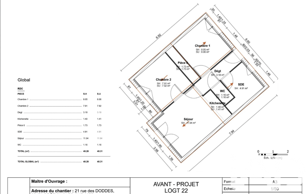 - Surface habitable : 40 m²