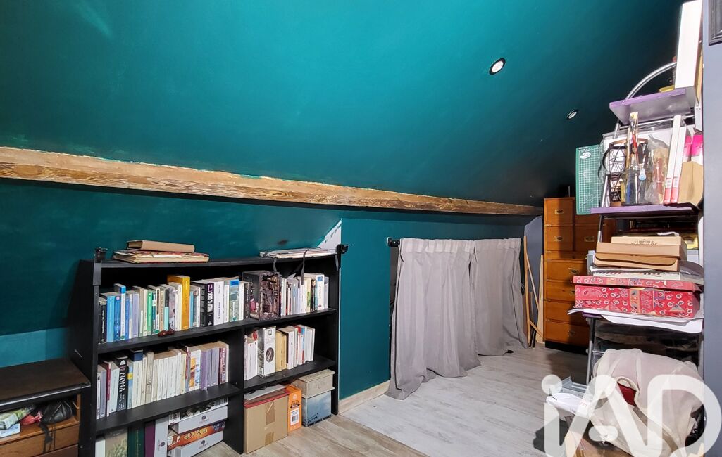 A l'étage, un dégagement avec étagères dessert une chambre mansardée puis une deuxième basse de plafond.