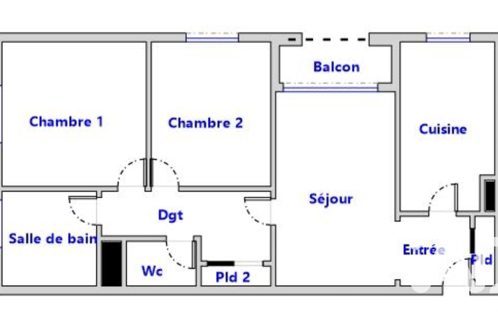 Ce bien comprend: une entrée avec des rangements, une cuisine équipée, une belle pièce de vie, donnant sur un petit balcon, deux chambres, une salle de bains et un WC séparé.